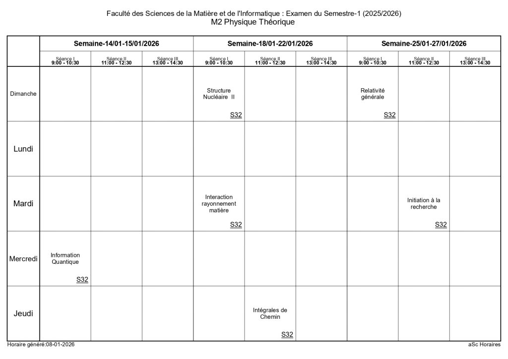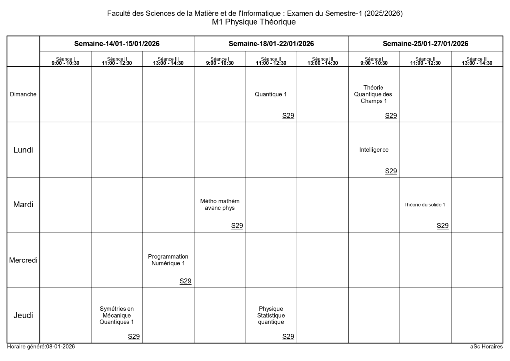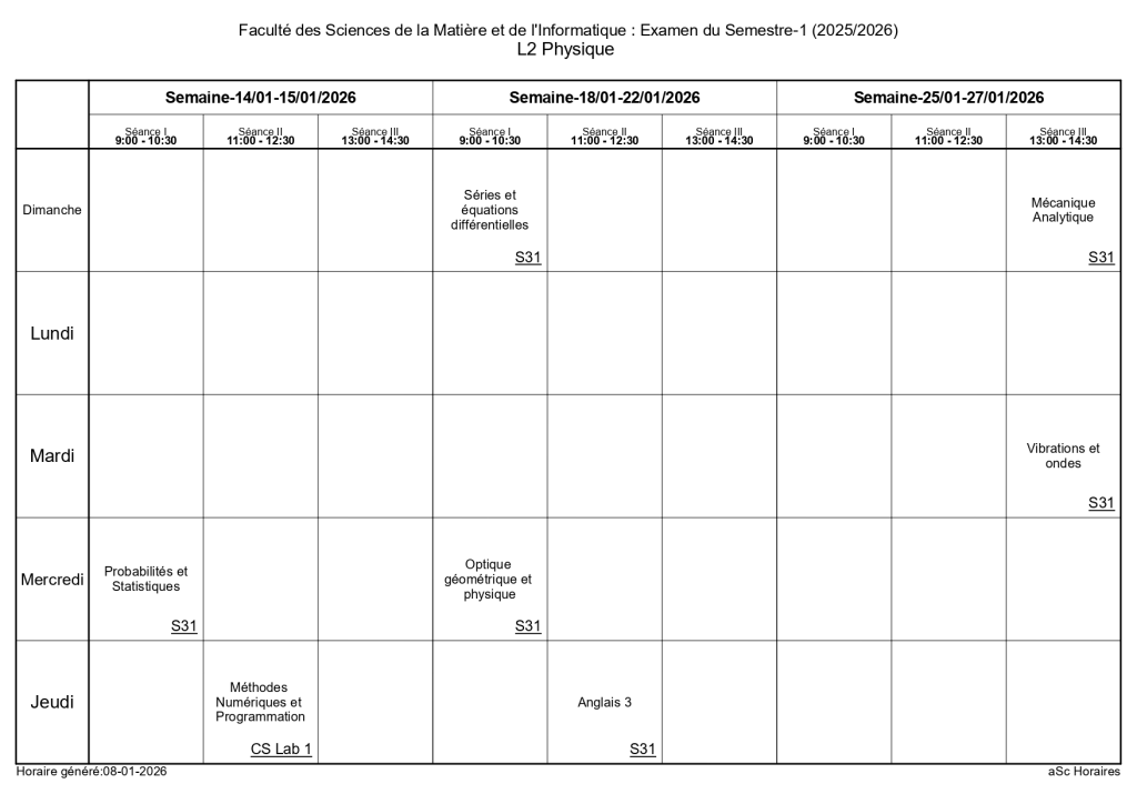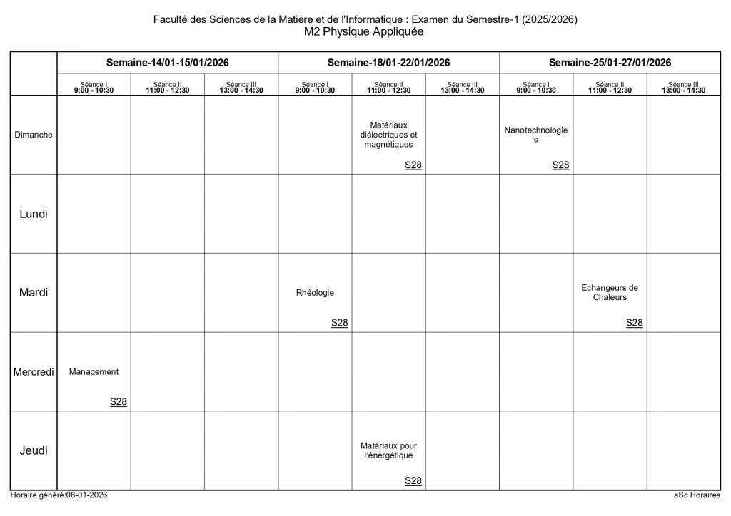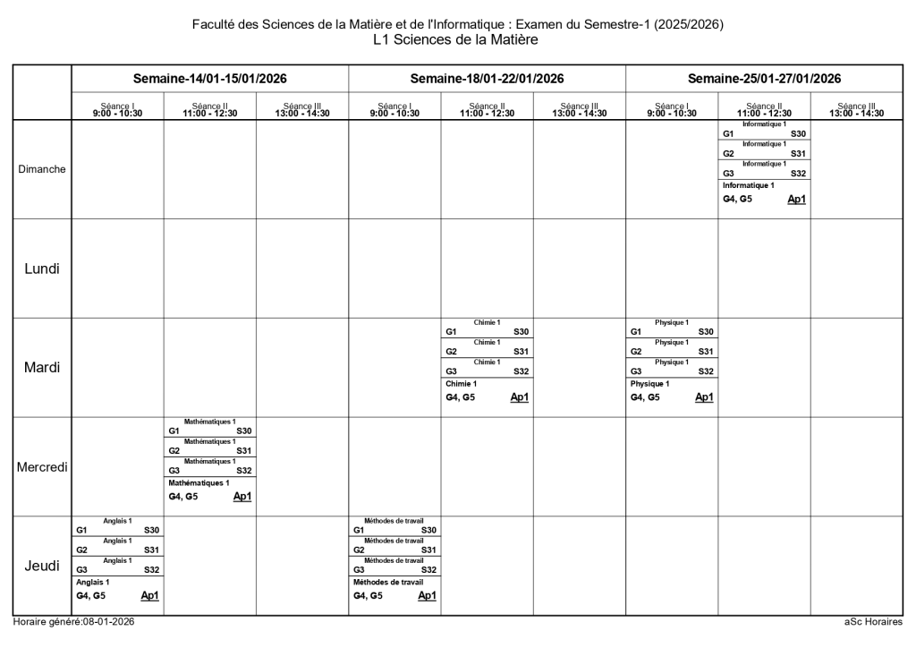 رزنامة امتحانات السداسي الأول لقسم الفيزياء – السنة الأولى علوم المادة / Non classé / بواسطة webmaster.fsminfo