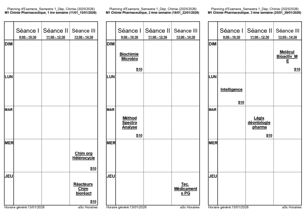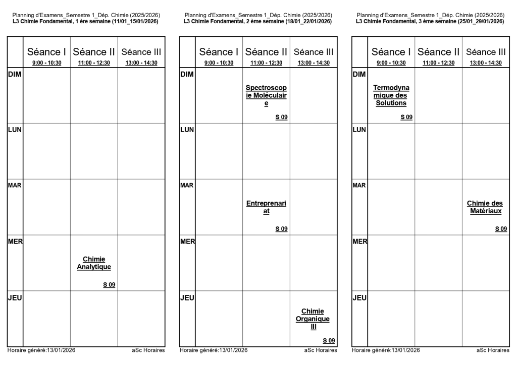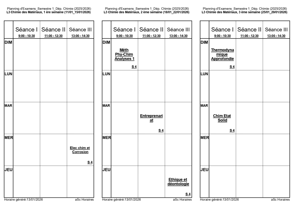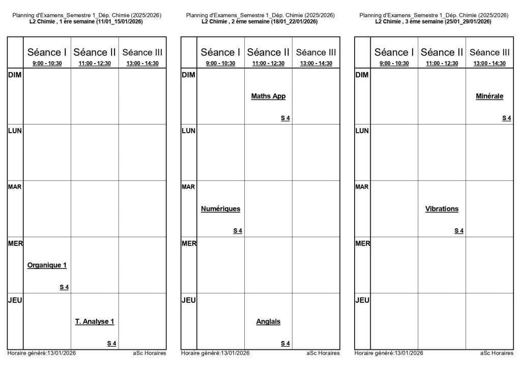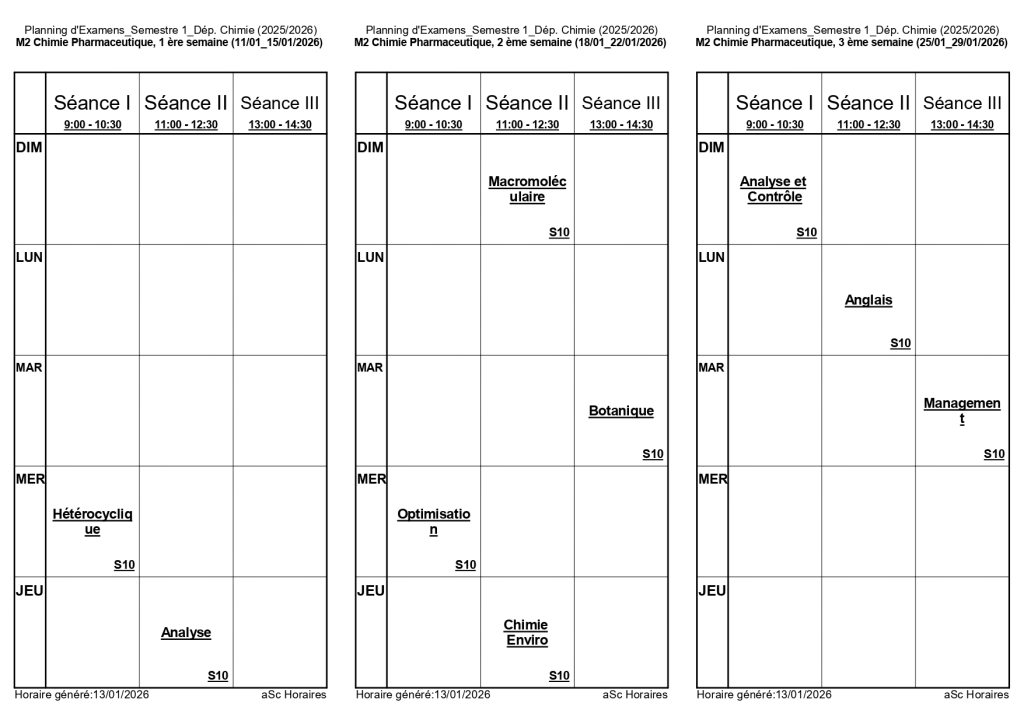 رزنامة امتحانات السداسي الأول لقسم الكيمياء