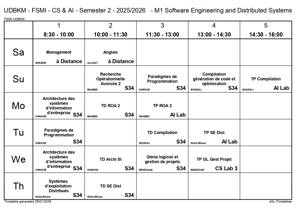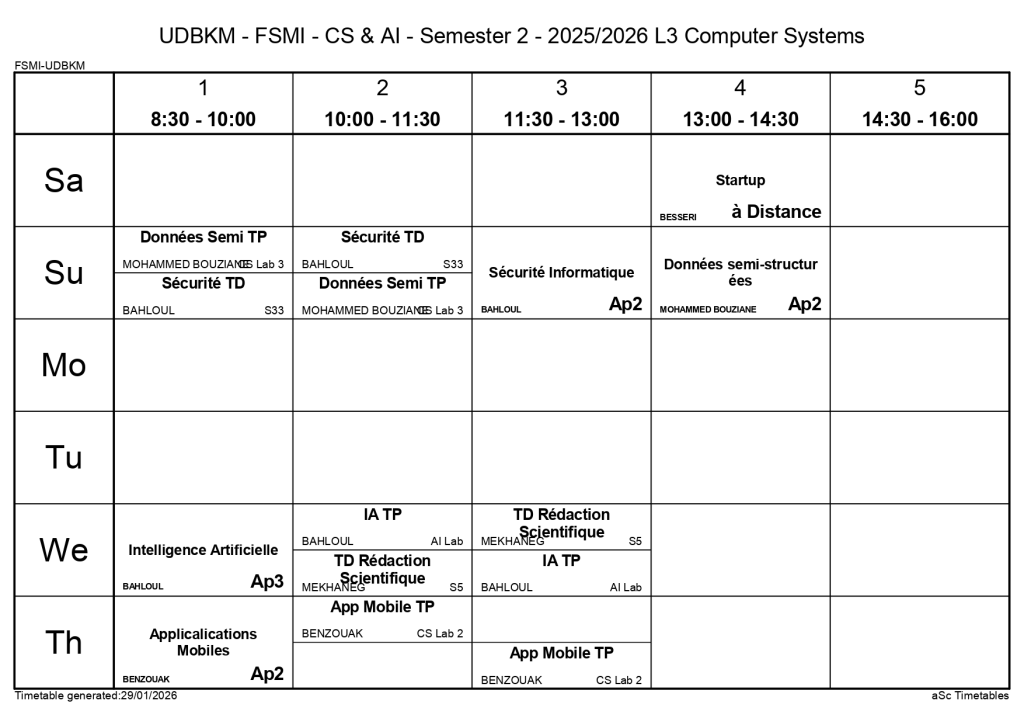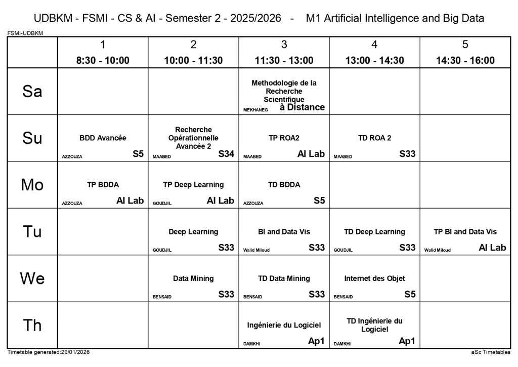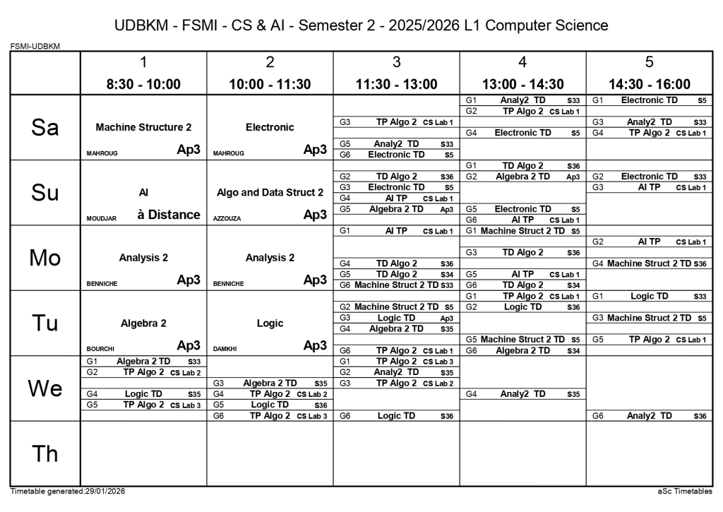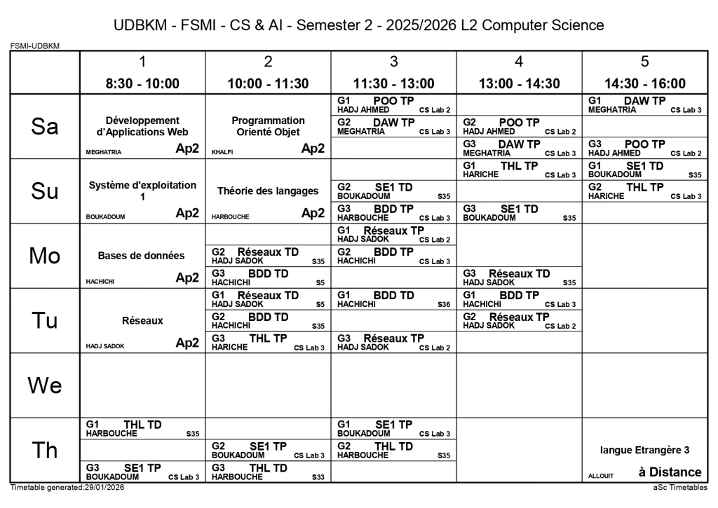 Timetable of the Departments of Computer Science and Artificial Intelligence – Second Semester / Non classé / By webmaster.fsminfo